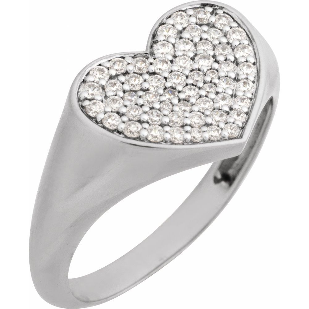 A classic signet shape, reimagined with a pavé diamond heart that catches light from every angle. It's bold, it's romantic, and it sits perfectly on your pinky or ring finger—a little daily reminder that love looks good on you.
