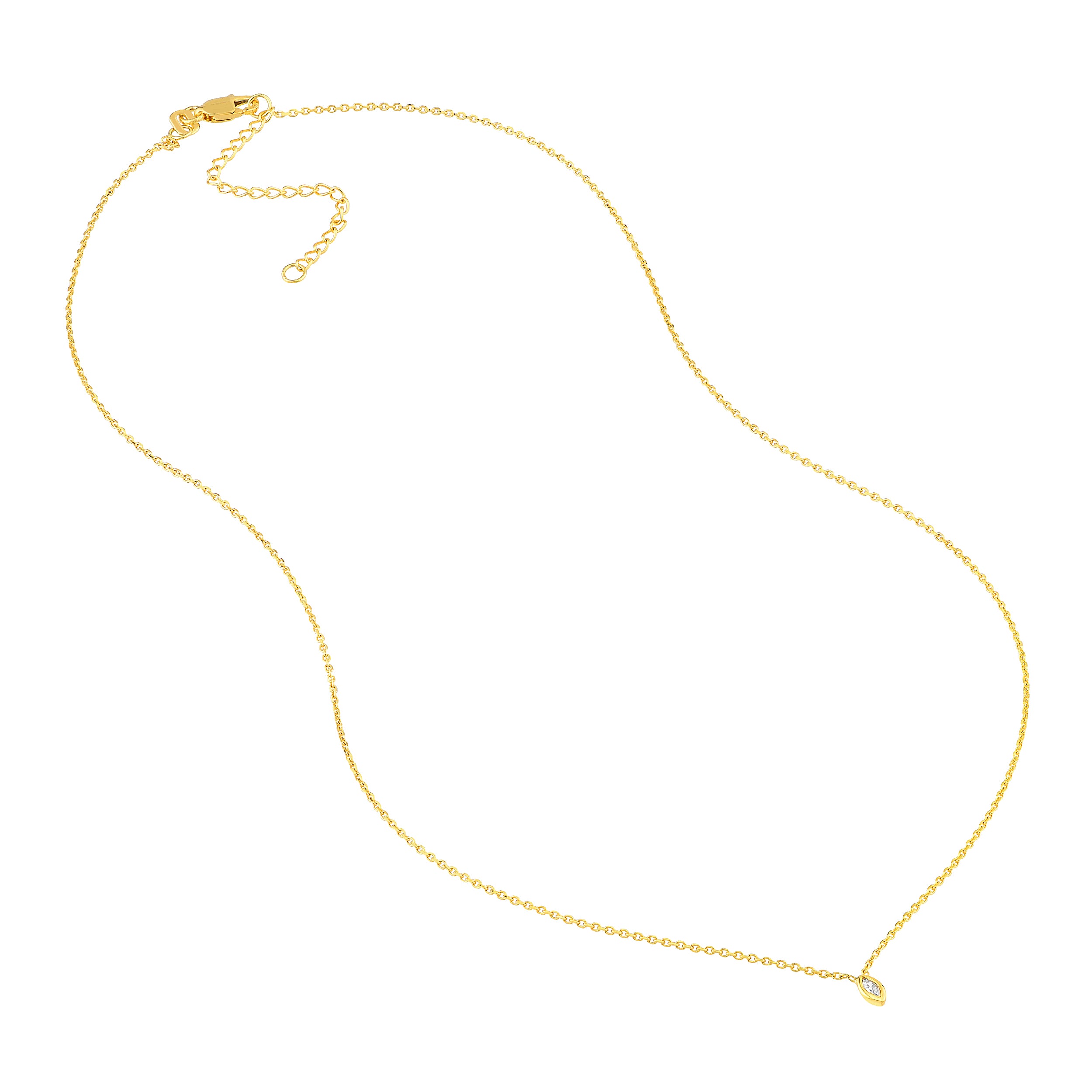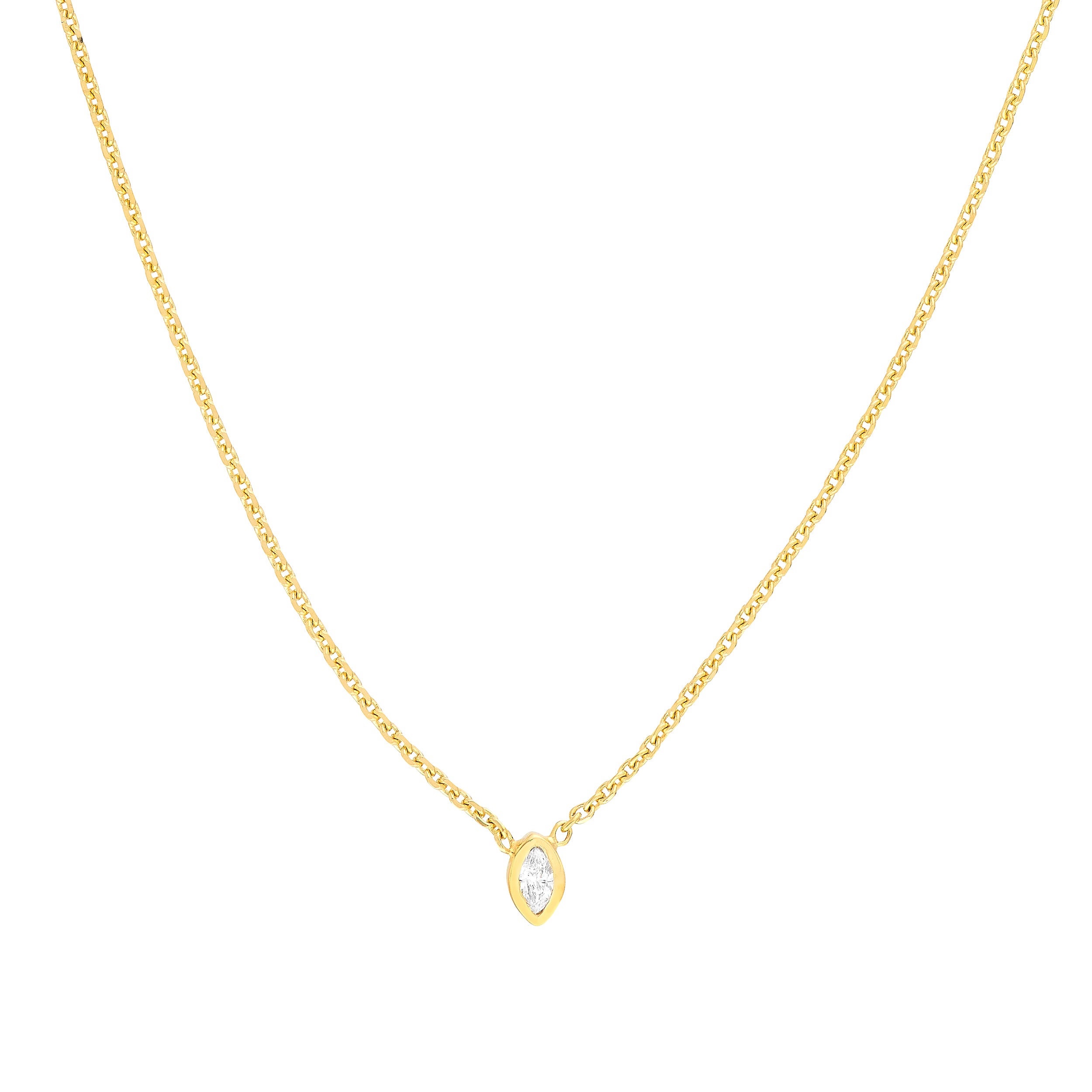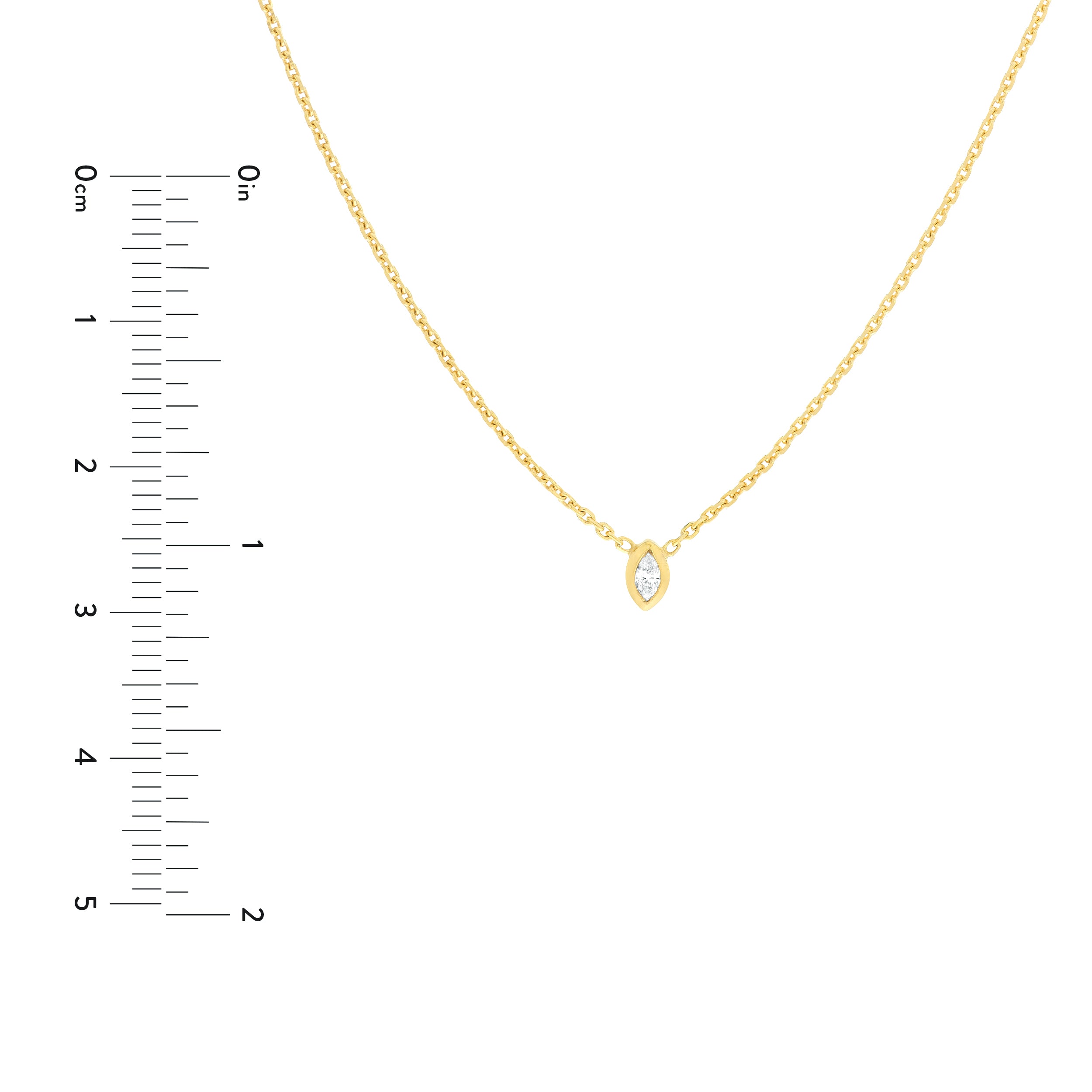 A delicate statement of timeless elegance, this Marquise Bezel Diamond Necklace features a dainty 0.05 cttw marquise-cut diamond nestled in a smooth, polished bezel setting. The sleek gold frame highlights the diamond's distinctive elongated silhouette, creating a refined look that effortlessly transitions from everyday wear to special occasions.